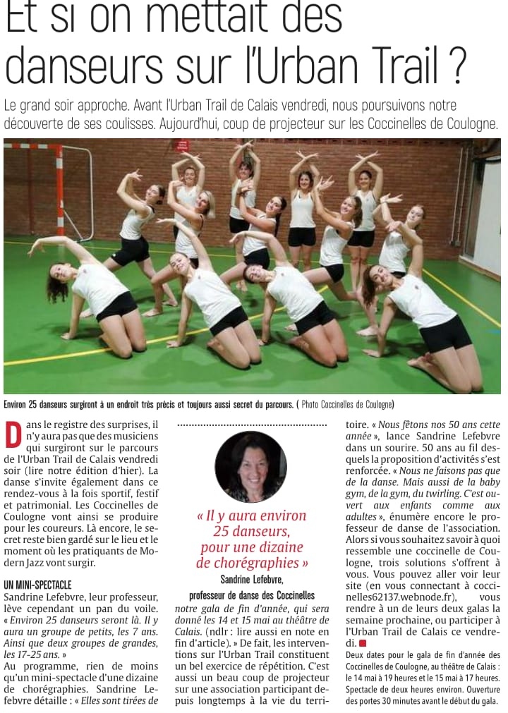 Les Coccinelles (Avancées 1 et 2 et niveau 2) feront une démonstration lors de l'urban trail ce vendredi à 19h30 à la Mairie de Calais.